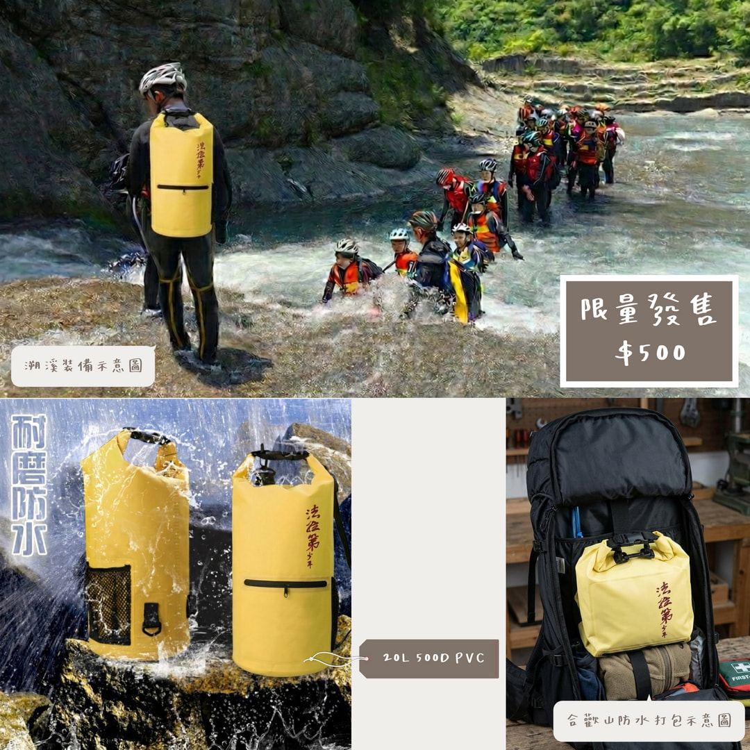 第二波義賣預訂(限量50個):不一定能於溯溪課程前到貨,售完即止。https://reurl.cc/O6Xk23